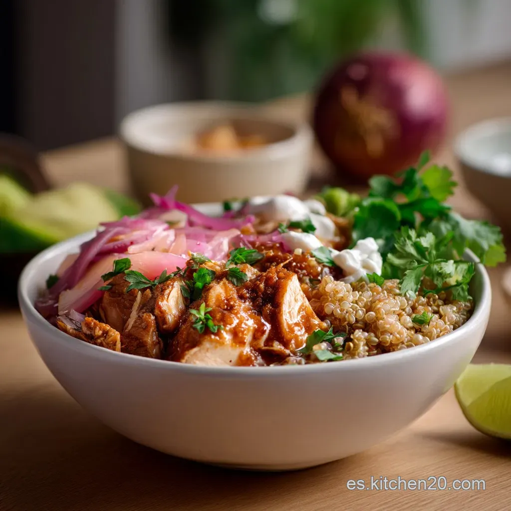 Un último consejo: si vas a servir esto para invitados, coloca la quinoa en la base y usa moldes de cocina (aros) para darle forma al pollo y los toppings. Una presentación bonita siempre hace que la comida saludable sepa aún mejor. ¡A disfrutar!