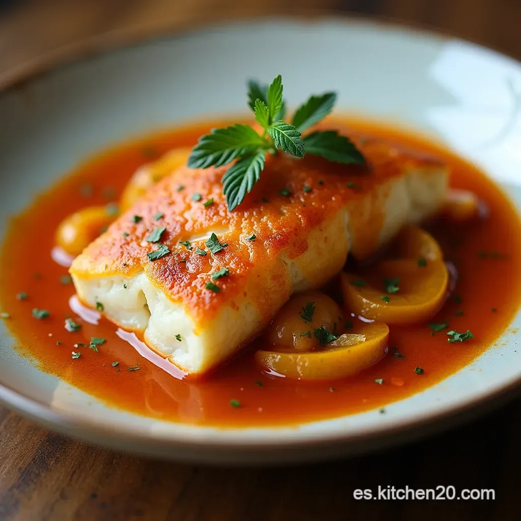 Con la salsa lista, reintroducimos con mucho cuidado los trozos de pescado sellado, asegurándonos de que queden sumergidos. El pescado solo requiere entre 10 y 15 minutos a fuego muy bajo para terminar de cocerse. El objetivo es que esté tierno y jugoso, no desintegrado.