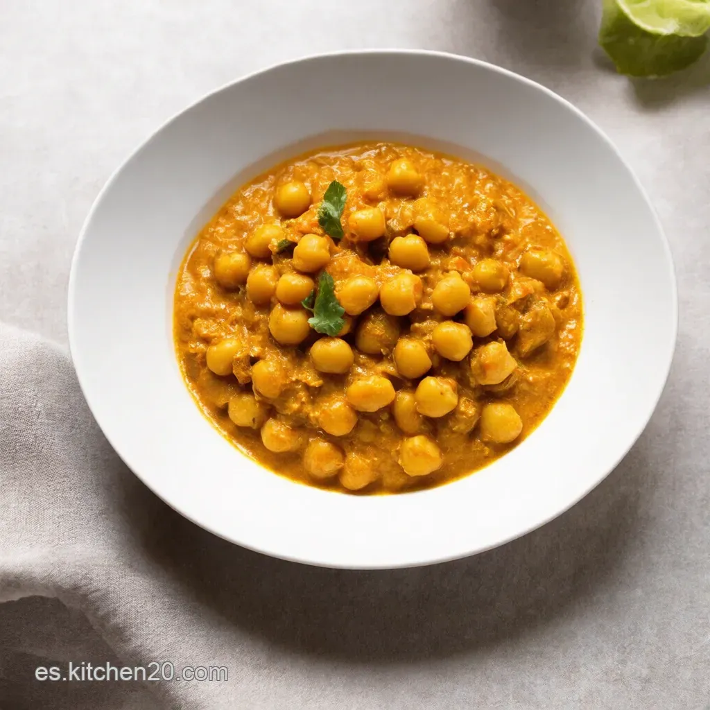 A la hora de emplatar tu Curry de garbanzos con leche de coco , la presentación lo es todo. Puedes servirlo en un bol de barro para darle un toque rústico, o en un plato hondo con un poco de arroz basmati al lado.