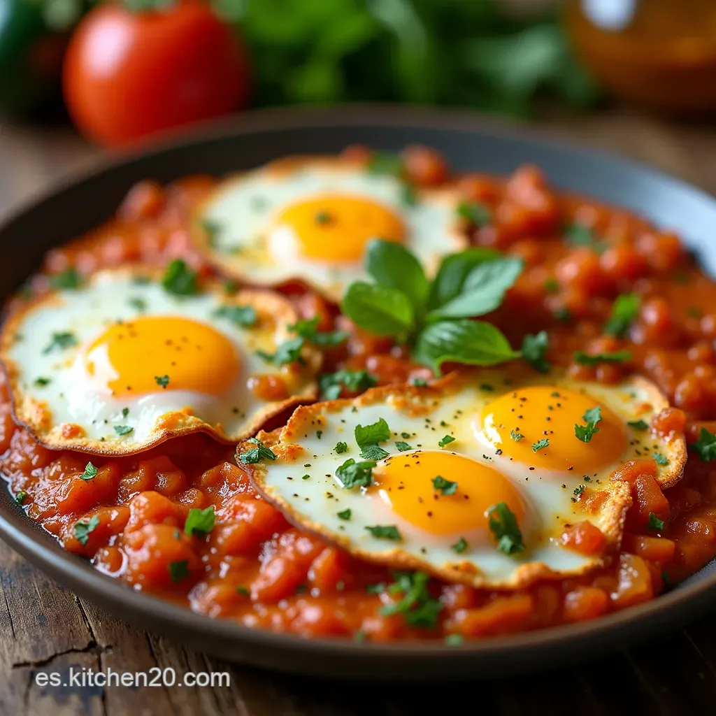 Justo antes de llevar la sartén a la mesa, espolvoree generosamente con perejil fresco picado. Este toque final no solo aporta color vibrante, sino que introduce una nota herbácea fresca que contrasta maravillosamente con la riqueza del tomate cocido.