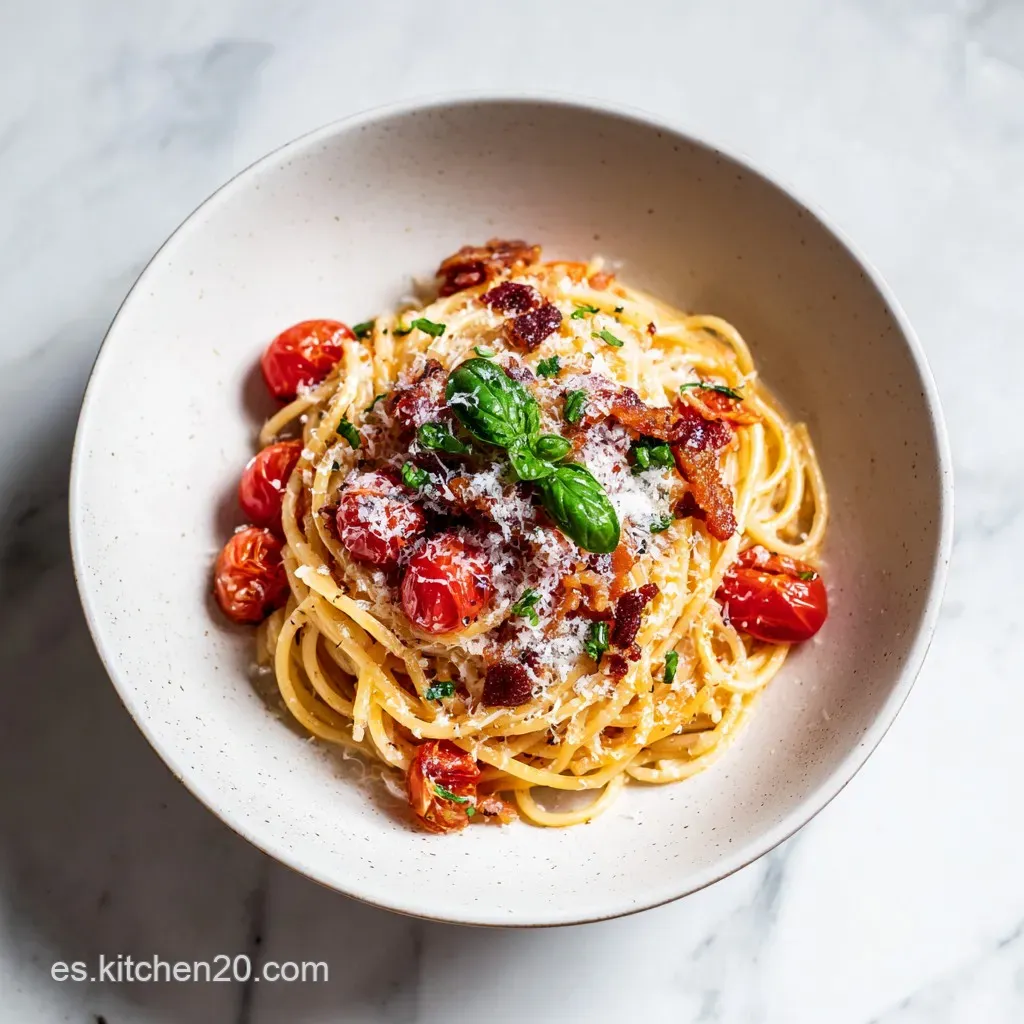 Añade el guanciale crujiente justo en el último segundo antes de llevar a la mesa para que el contraste de texturas entre la salsa sedosa y el cerdo crocante sea máximo.