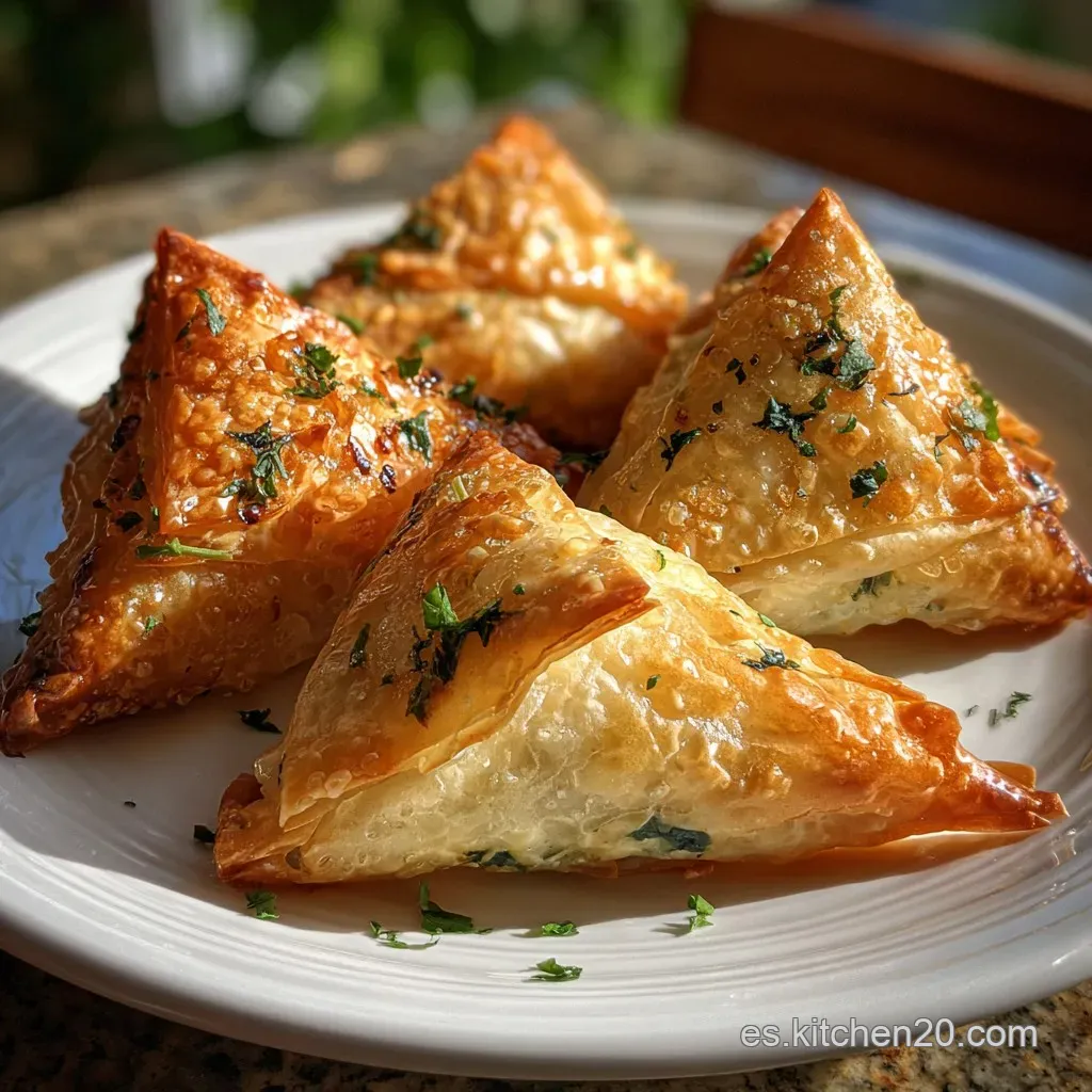 - El sellado de bordes: Muchos creen que se necesita huevo para sellar la pasta filo. La realidad es que la propia mantequilla, al enfriarse ligeramente, actúa como un pegamento estructural suficiente para mantener los triángulos cerrados durante el horneado.