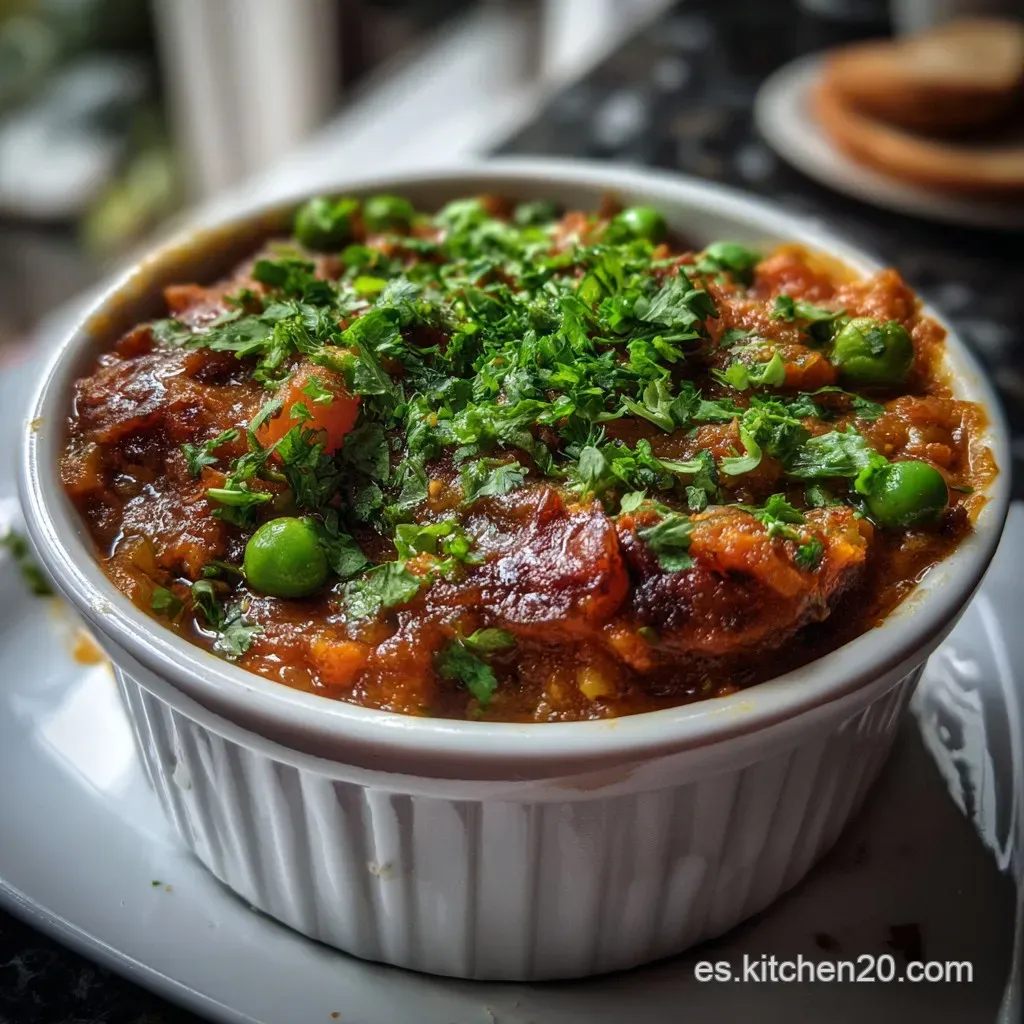 Para una experiencia completa, sirve tu Pav Bhaji Recipe Spicy Vegetable Curry con una guarnición de cebolla roja picada finamente, gajos de limón y un puñado generoso de cilantro fresco. El contraste entre el curry caliente y la cebolla cruda crujiente es fundamental.