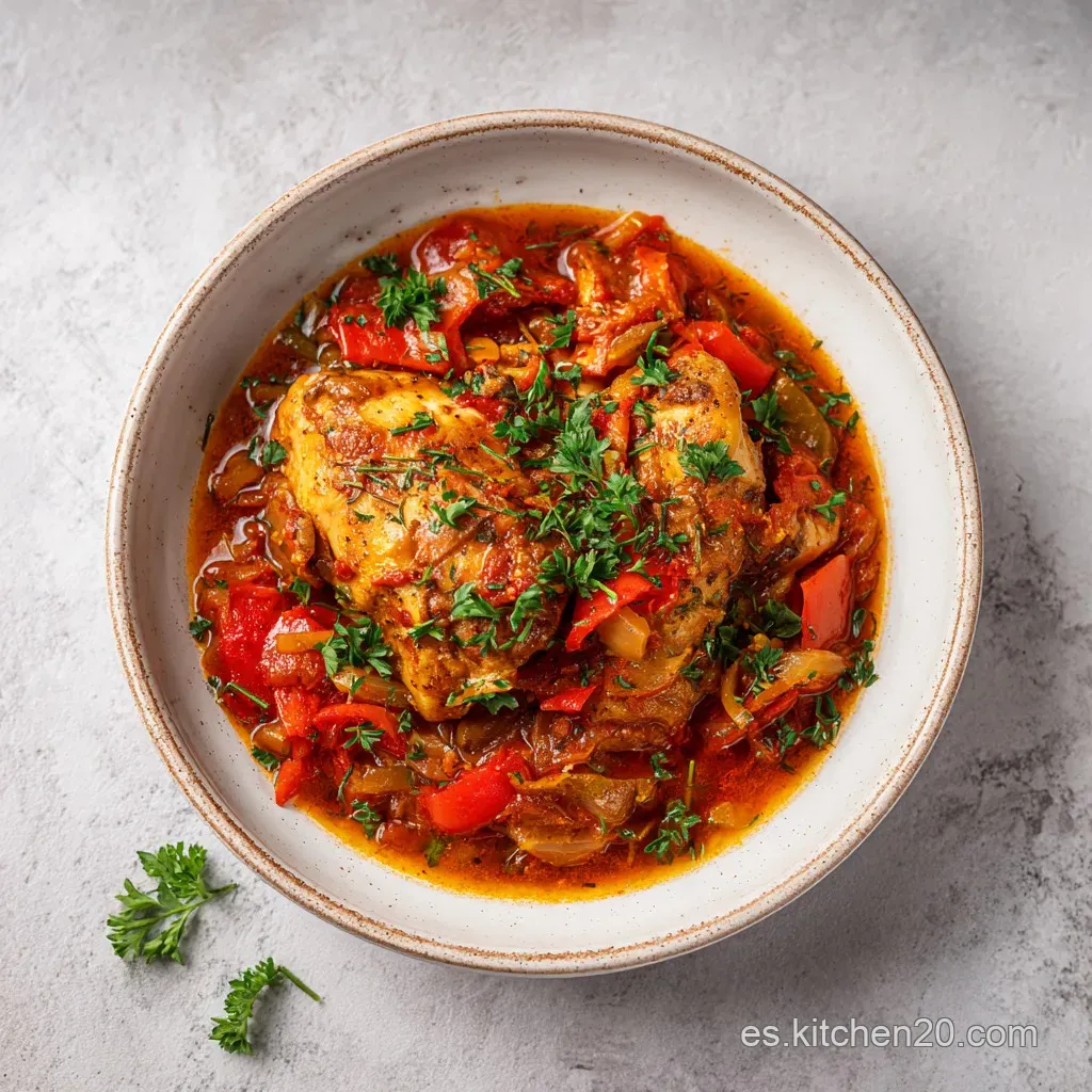 Recuerda que este plato es rústico por definición. No busques una presentación minimalista; sirve una buena ración de pollo, báñalo generosamente con la salsa y asegúrate de que cada plato tenga un par de aceitunas y champiñones. ¡A disfrutar!
