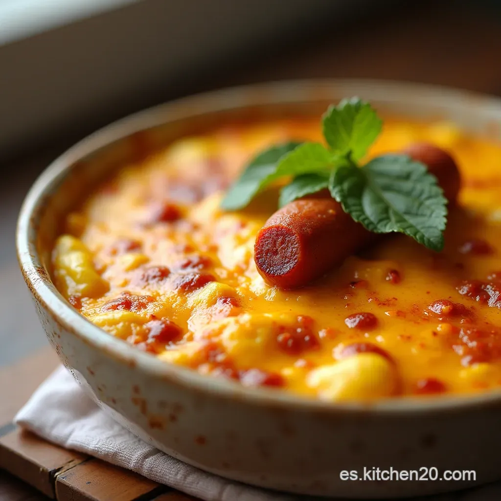 Lo que logramos es un equilibrio magistral entre la untuosidad sedosa y la profundidad del sabor proporcionada por ingredientes seleccionados meticulosamente. Esta versión cremosa con chorizo ahumado se distingue por su acabado homogéneo y su sabor intenso, demostrando que un Receta Queso Fundido fácil puede tener complejidad de alta cocina.