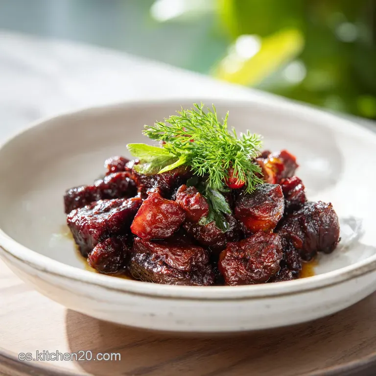 - Flavor/Texture Hook: Carne aterciopelada con salsa brillante de reducción intensa